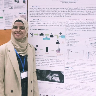 Nishat is a PhD candidate at Instituto Superior Técnico specializing in lithium-ion battery recycling and the development of nanomaterials for supercapacitor applications. With a background in Nanoscience from Mumbai University, Nishat brings expertise in material synthesis, characterization, and sustainable energy storage solutions.