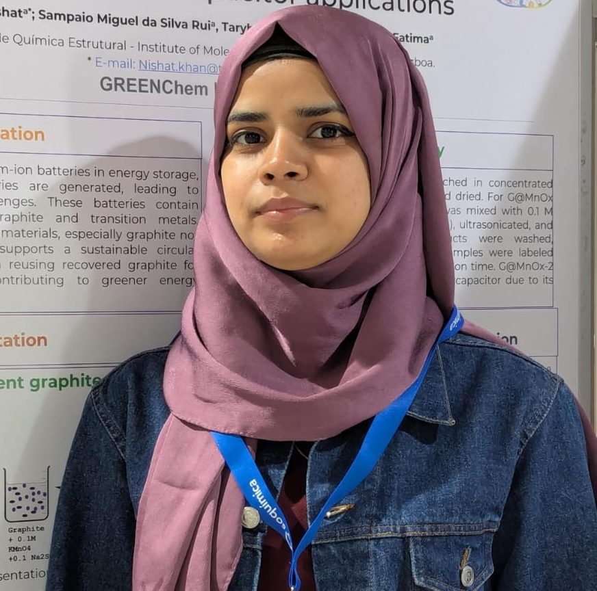 Nishat Khan is a Ph.D. candidate at Instituto Superior Técnico, Lisbon, specializing in lithium-ion battery recycling and nanomaterial development for supercapacitor applications. With a strong foundation in Nanoscience from Mumbai University, Nishat focuses on material synthesis, characterization, and advancing sustainable energy storage technologies.